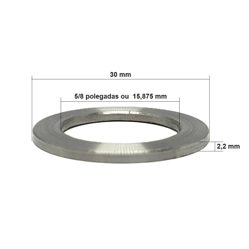 Bucha de Redução do Furo Central de Serra Circular de 30 mm para 5/8 polegada ou 15,875 mm de diâmetro, compatível com serra de 2,2 mm de espessura de chapa. Produzida com matérias-primas de alta qualidade a bucha INDFEMA apresenta alto desempenho e rendimento.