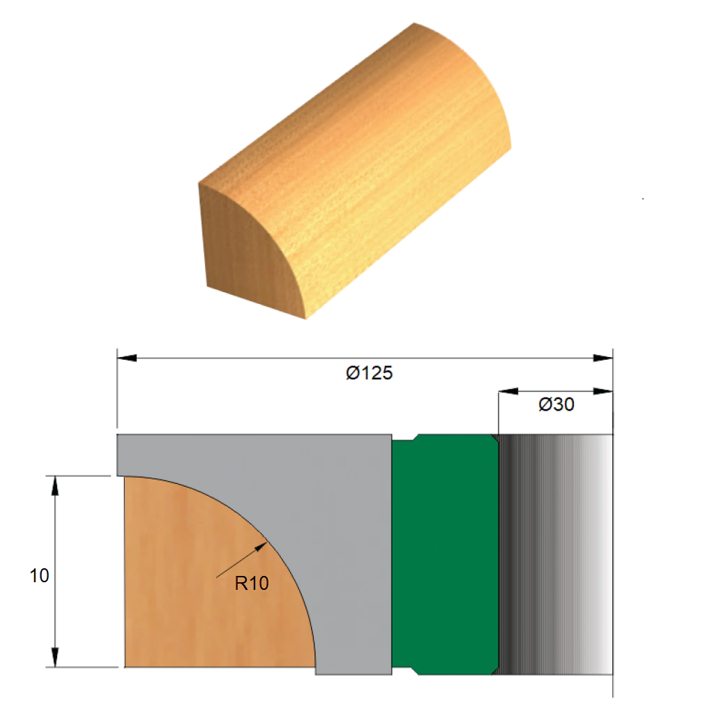 Fresa para cordão de janela de altura e raio de 10mm, Lado da Fresa Direita, [Imagem]. Produzida com matérias-primas de alta qualidade a fresa INDFEMA apresenta alto desempenho e rendimento.
